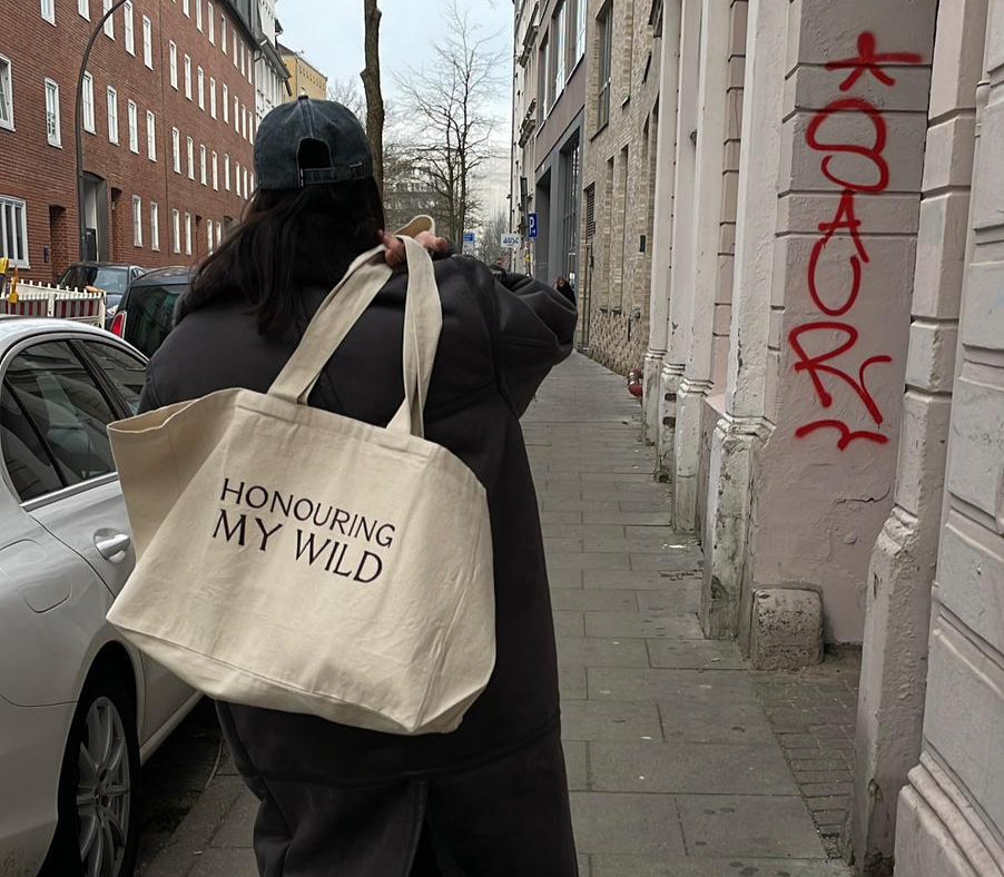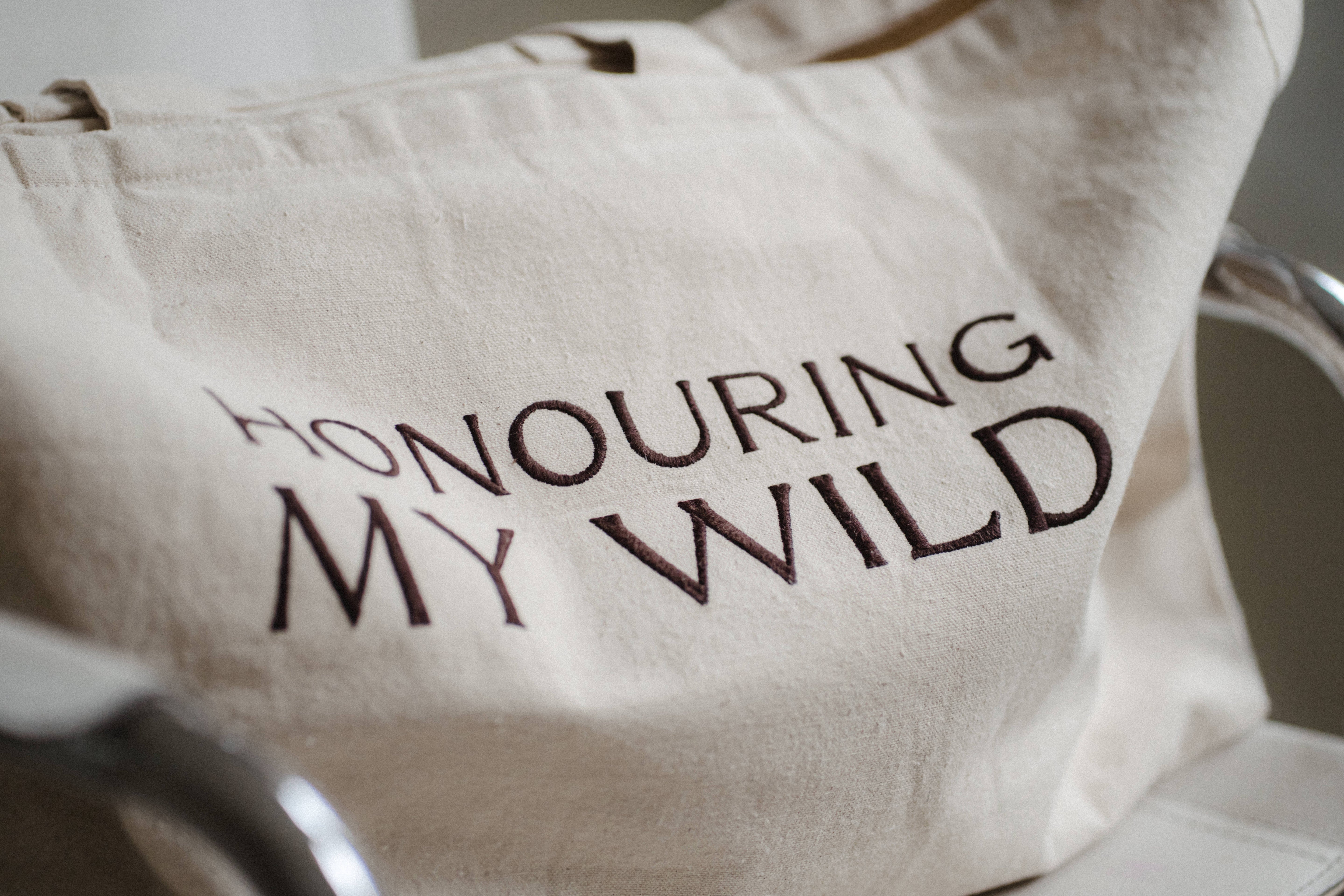 One side is delicately embroidered with our signature sun logo, radiating warmth and light. The other side whispers a gentle yet powerful reminder: Honouring my wild. Because your journey is yours to celebrate.