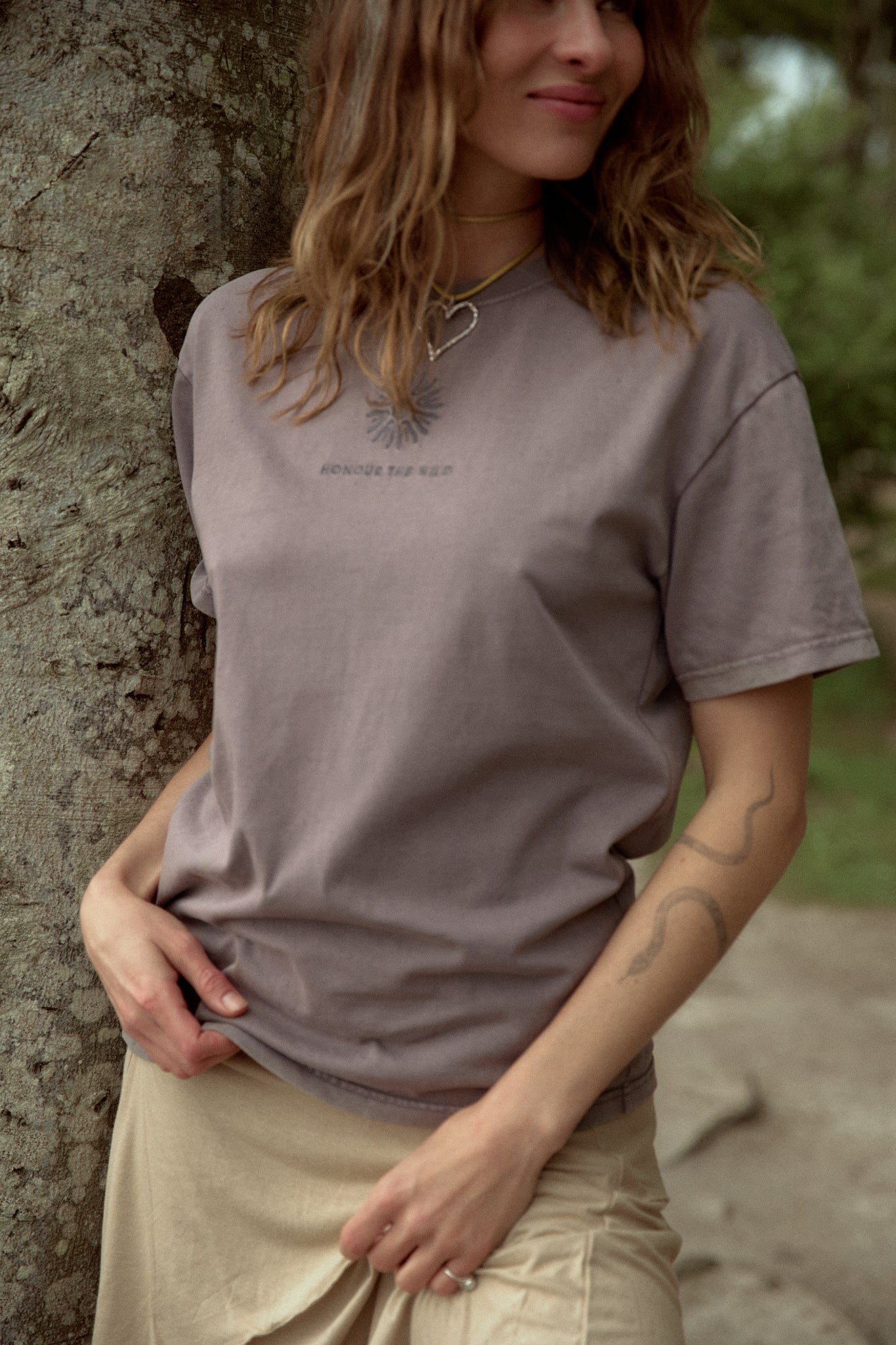 „Honouring the wild“ we made it our mission to create a t-Shirt that is simple and yet beyond “a t-Shirt”. A fully recyclable piece, we curated the most high-quality cotton into this shirt and it’s companion our sweater Mazu that are both hand stitched with our symbol of inner radiance, that inner sun, that inner light.