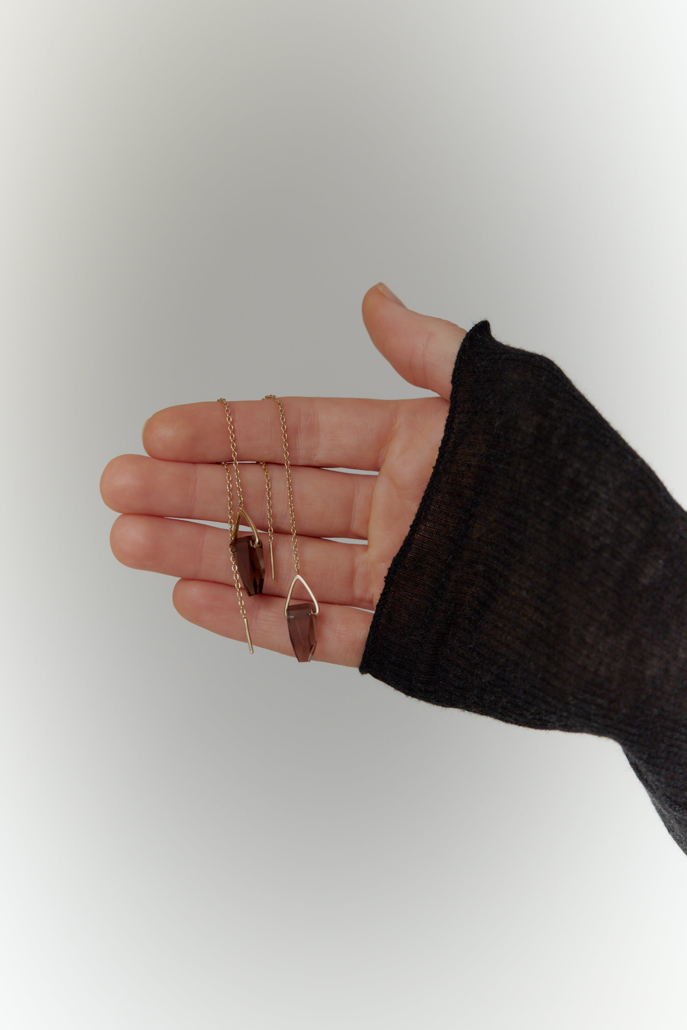 Our Mania earrings are simple, elegant Smokey Quartz pendants in a pull through design.