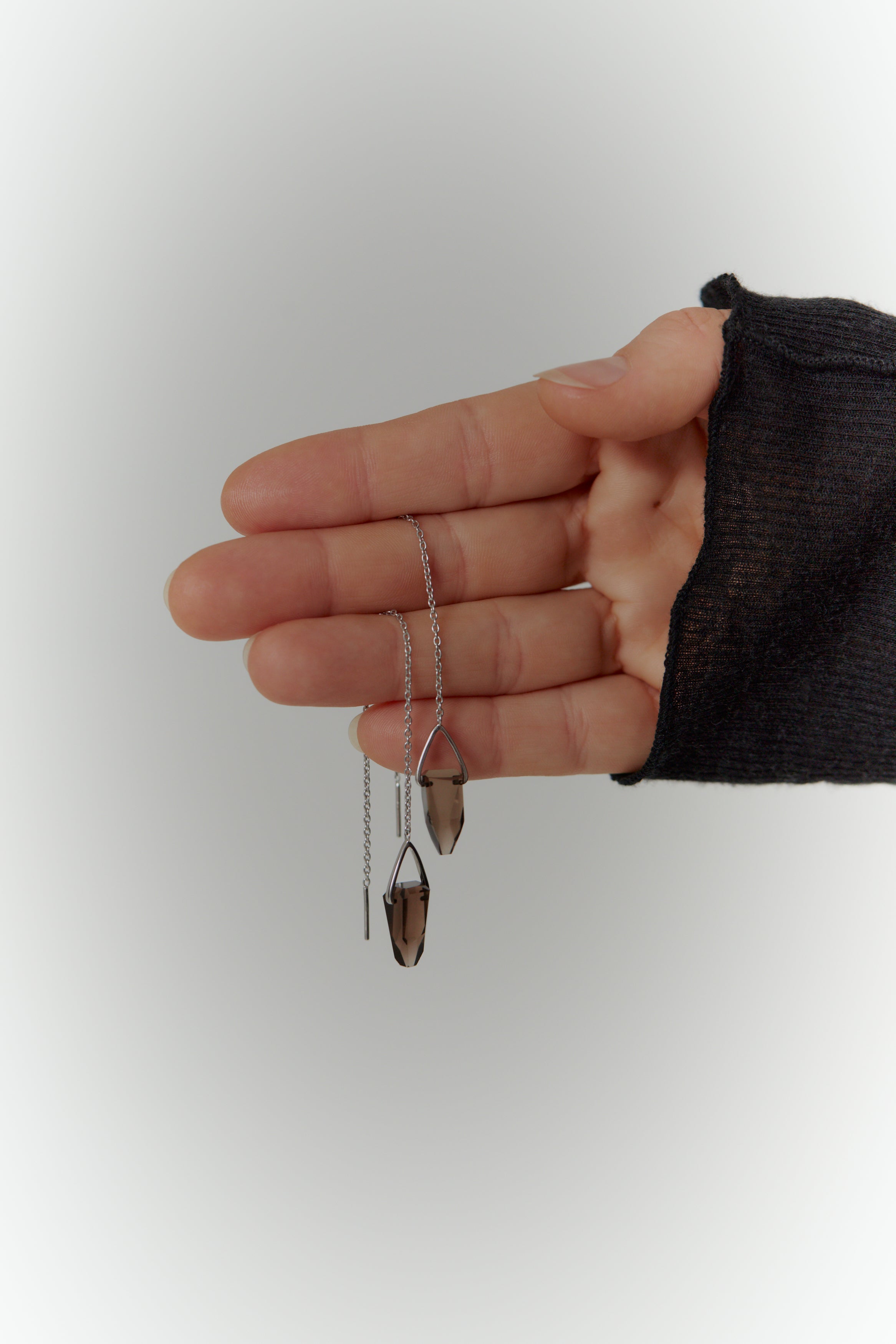 Our Mania earrings are simple, elegant Smokey Quartz pendants in a pull through design.