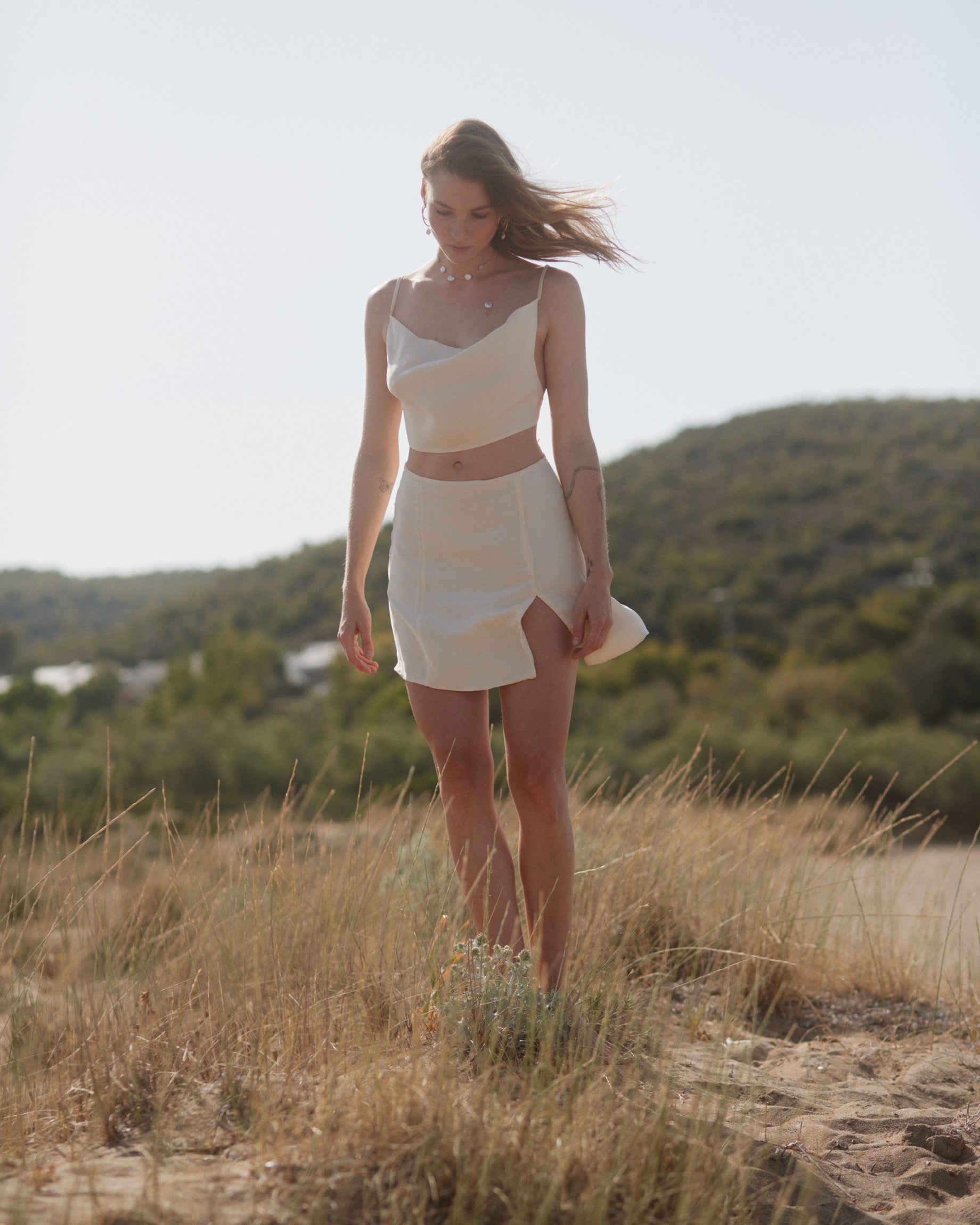 Designed in Hamburg and crafted in Portugal this cupro top is a refined creation to be worn in multiple ways.