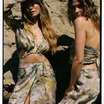 Designed in Hamburg and crafted in Portugal this pure cupro skirt Theia is a sexy, playful and sophisticated wrap skirt with our signature V-shape in the front, a sleek waist tie and combined with a subtle cowl in the back. Designed to embrace the beautiful goddess within you and conjured with our beloved dreamy pearl print.