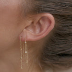 Three fine gems fall gently from your ear like petals unfurling. Aphrodite is a gentle statement - feminine, refined, endlessly wearable. It's delicate, playful and a real beauty to mix and match with some more of our sparkling ear candy.