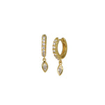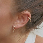 A timeless favorite. Clio features a classic micro hoop with a dangling teardrop crystal.
