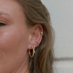 The Diana hoops hug with the essence of the watchful eye - each set with a horizontal CZ crystal at the center that looks and shines out.