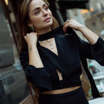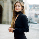 It is perfectly combinable with our Black Boulse Annea but also with our previous pearl cupro pieces from our Chapter One collection: cupro dress Meduna, our cupro skirt Theia and cupro blouse Sunna.