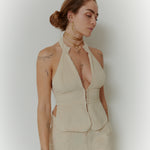Designed in Hamburg and crafted in Portugal this pure cotton vest is a is a refined creation to be worn in multiple ways, both as an open vest and a top.