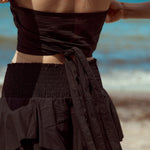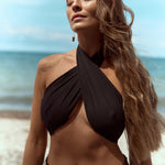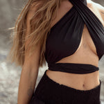 You can wrap it as a scarf, headband or in several top variations, some of them shown in our pictures above.