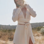 It is perfectly combinable with our cream cupro skirt Eva and cream scarf Epona but also with our previous cupro pieces from our Chapter One collection: our cupro skirt Thea and curpo dress Meduna.