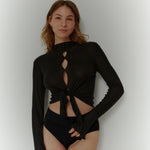 This long sleeve can be bound in multiple ways and its soft yet high-quality material and workmanship make it a perfect piece from any everyday to a more set event.