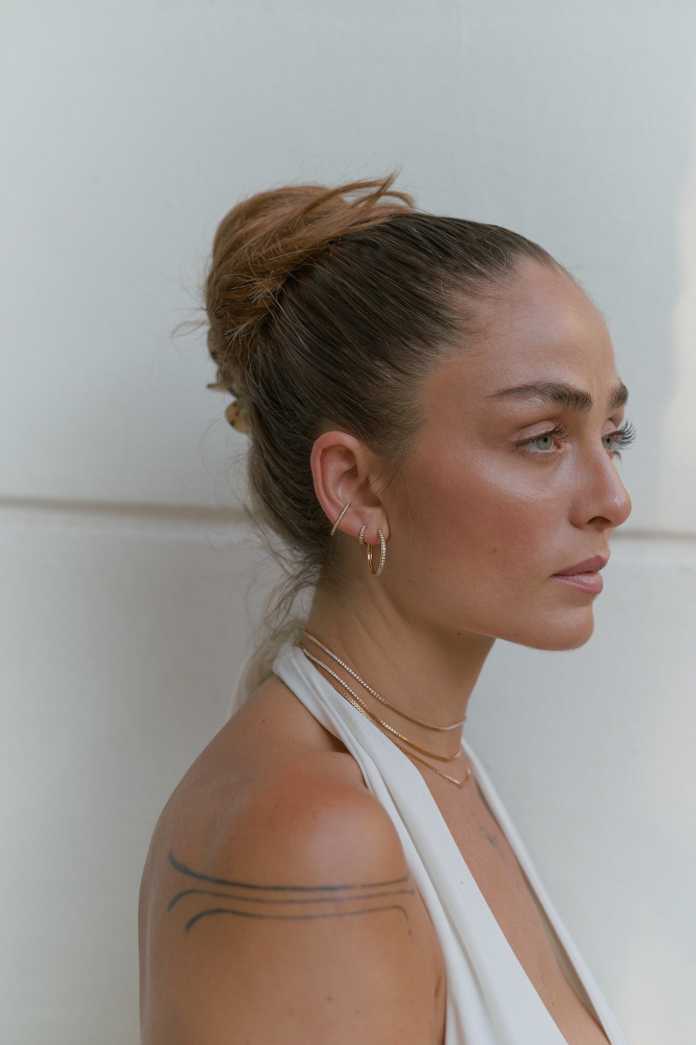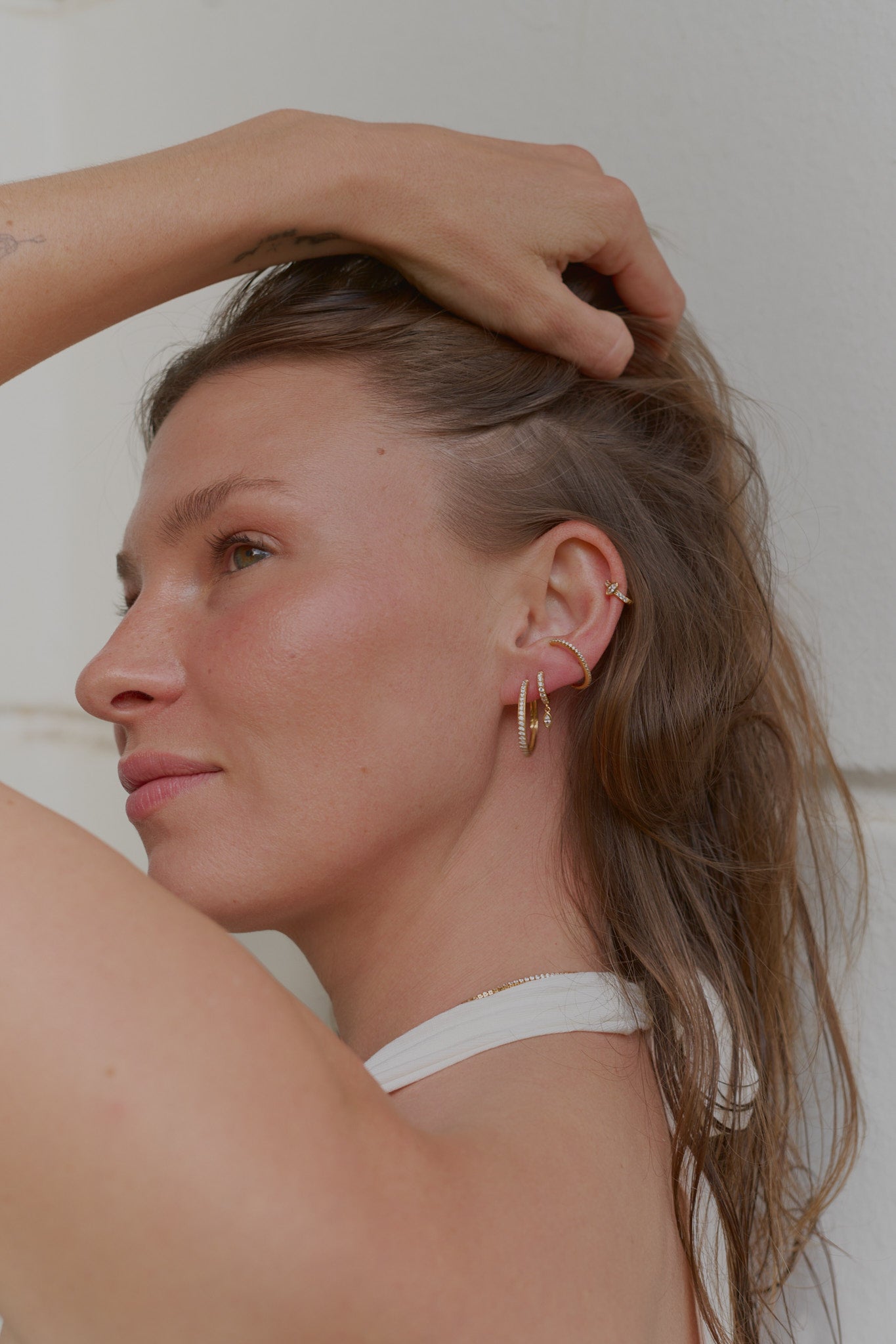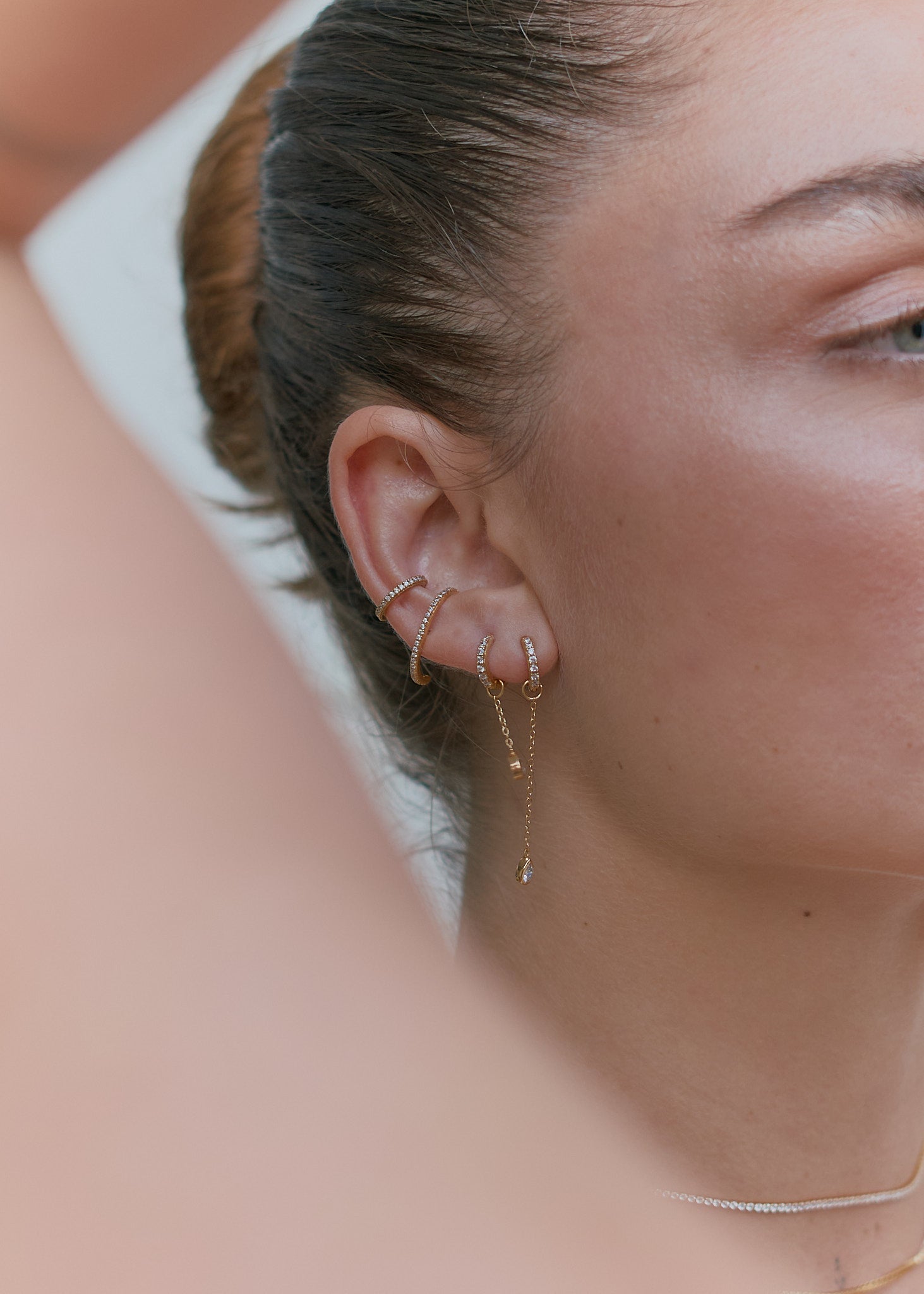 Sein Design schmiegt sich sanft um Ihr Ohrläppchen, das zusätzliche Funkeln macht es zu einem eleganten Statement-Stück, das ein Blickfang ist und dennoch Ihr Ohr weich und bequem umschließt.