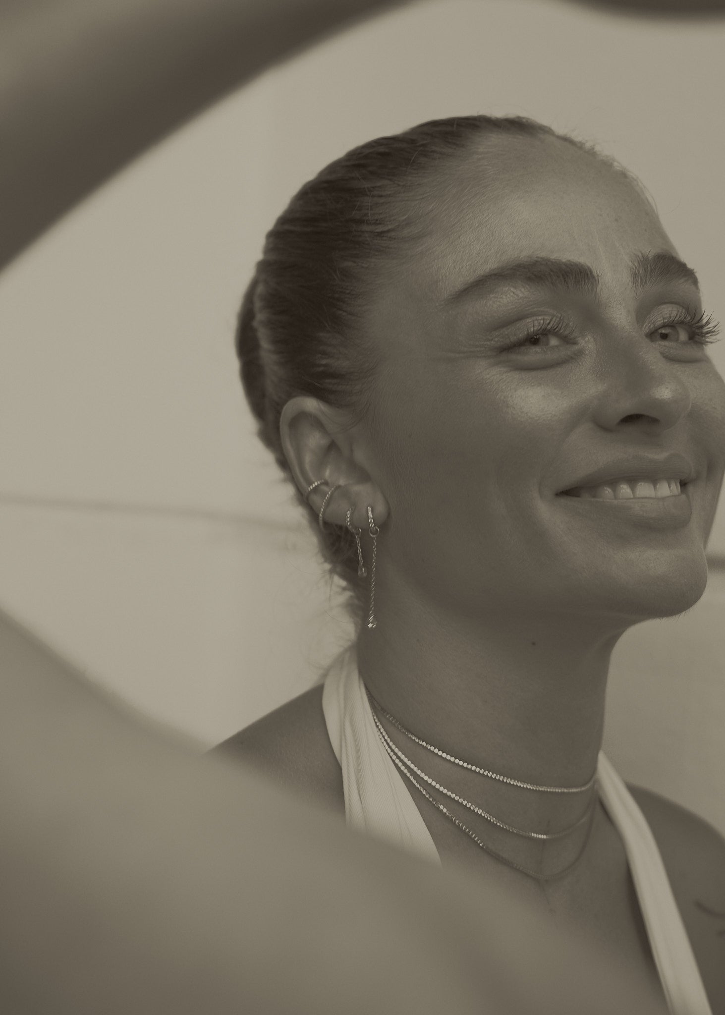 Unser gesamter Schmuck wird aus zertifiziertem, recyceltem 925er Sterlingsilber gefertigt. Dadurch entfällt der Bedarf an neu abgebauten Materialien und wir unterstützen die Vision einer wirklich zirkulären, nachhaltigen Zukunft.