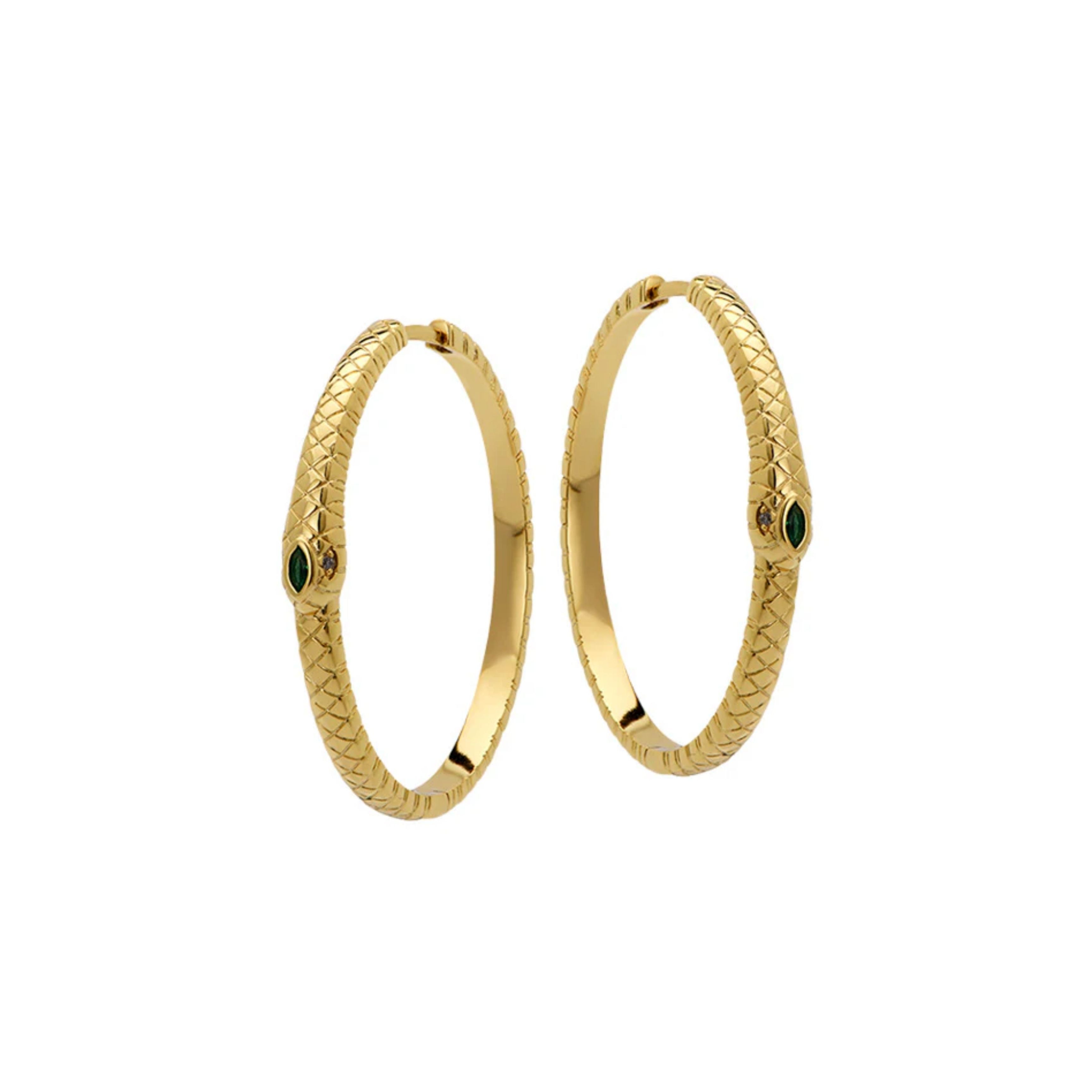 Sustainable gold plating and a precisely cut emerald-green gemstone form the serpent’s eye, adding a touch of mystical depth.